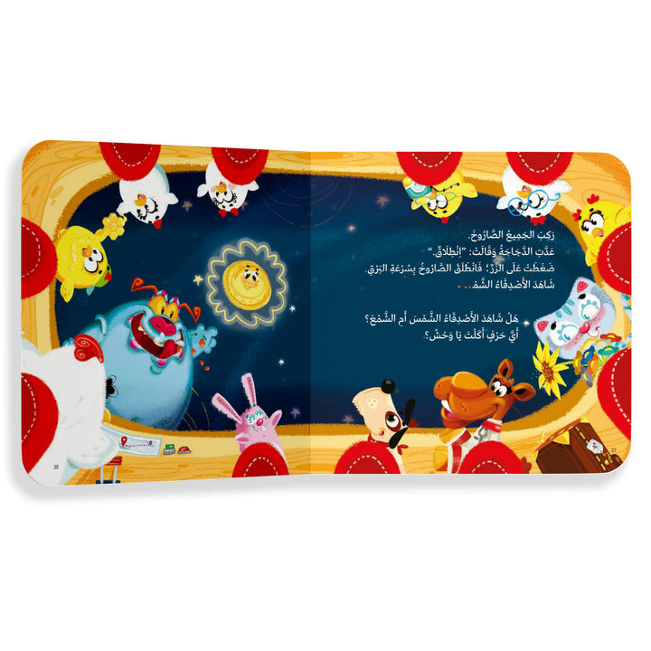 في هذا الجزء الجديد من سلسلة "أي حرف أكل الوحش؟"، يعيش الطفل مغامرة تعليمية وسط النجوم والصواريخ والكواكب. كل صفحة تحمل لغزًا جديدًا: هناك صورتان، وهناك كلمة ناقصة، والطفل عليه أن يتخيّل أي كلمة تناسب القصة أكثر. ثم يأتي دور الكشّاف… يركّز هذا الجزء على 7 حروف جديدة : ت ,ب ,م ,ي, ه , س , ل يتعلّمها الطفل من خلال التخمين، التكرار، والتفاعل مع الصور والكلمات.